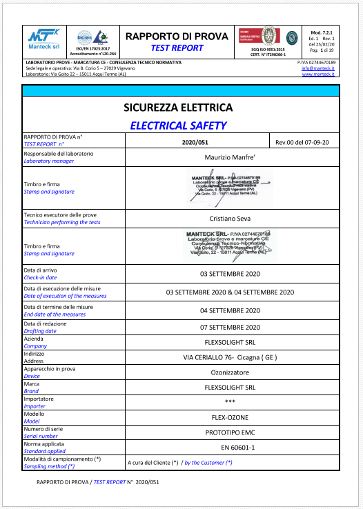 • CONFORME A COMPATIBILITA’ ELETTROMAGNETICA E SICUREZZA ELETTRICA