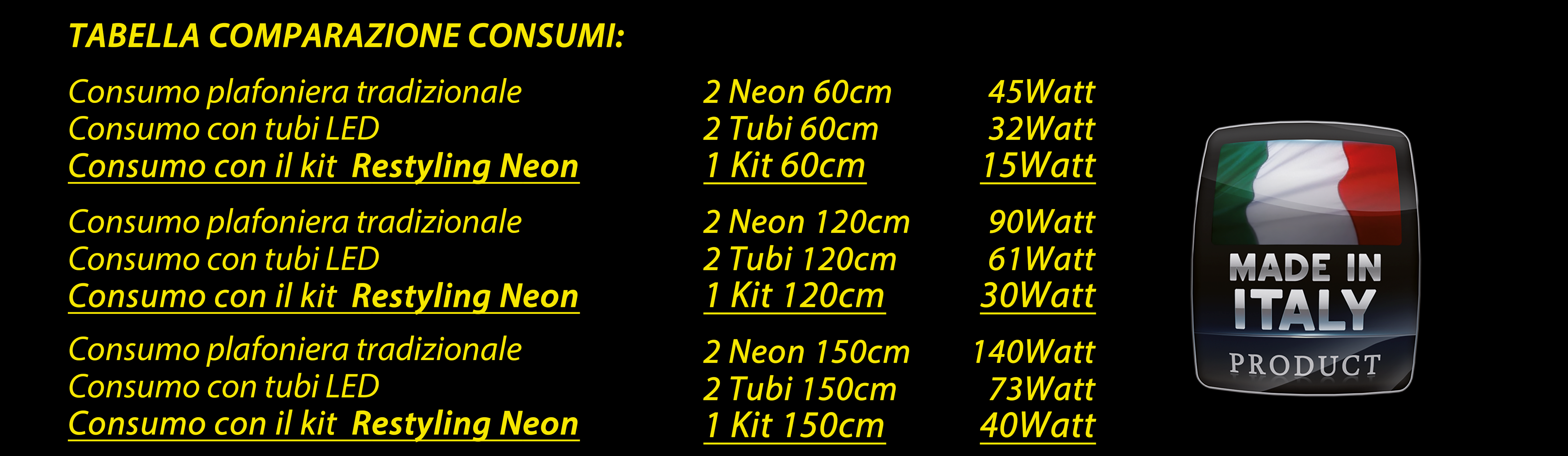 L’ indipendenza dal vecchio impianto garantisce una efficienza elevatissima, che non viene mai ottenuta ad esempio con i tubi led che essendo alimentati da un alimentatore presente nelle plafoniere continueranno a disperdere energia e rendendo così inefficace il sistema.