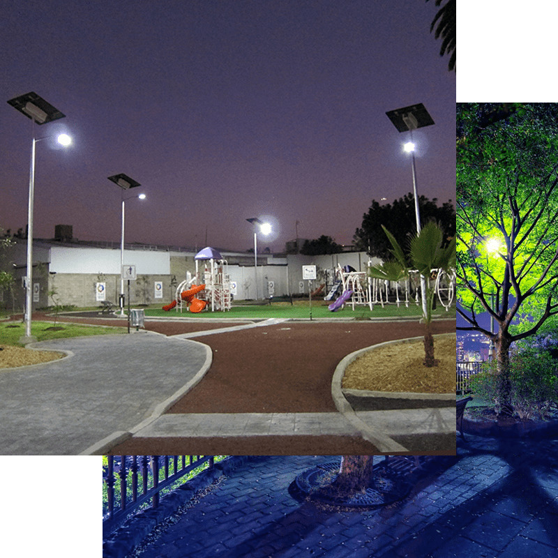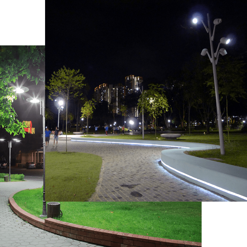 La luce di un parco, deve mettere in risalto la plasticità delle piante aprendo scorci e visuali. Gli apparecchi, il più possibile discreti, devono essere posizionati in modo da rendere perfettamente visibili e sicuri i percorsi come le aree di maggiore interesse, ma senza sottovalutare la suggestività generata dai contrasti e dai chiaroscuri: gli equilibri ed i giochi tra le luci led e le ombre sono, infatti, un importante mezzo di comunicazione sensoriale.