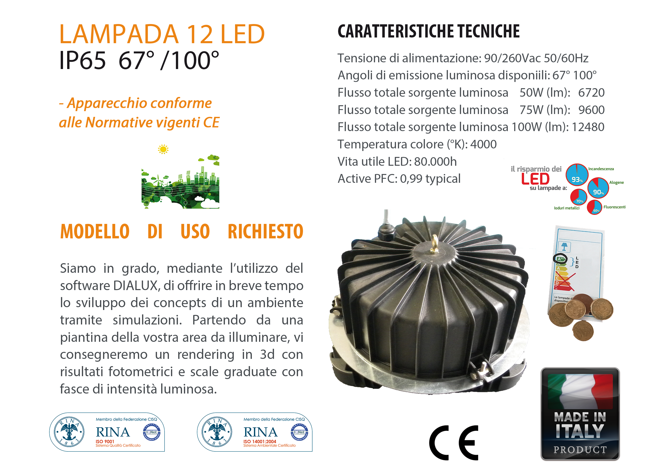 - Vita utile LED: 80.000h